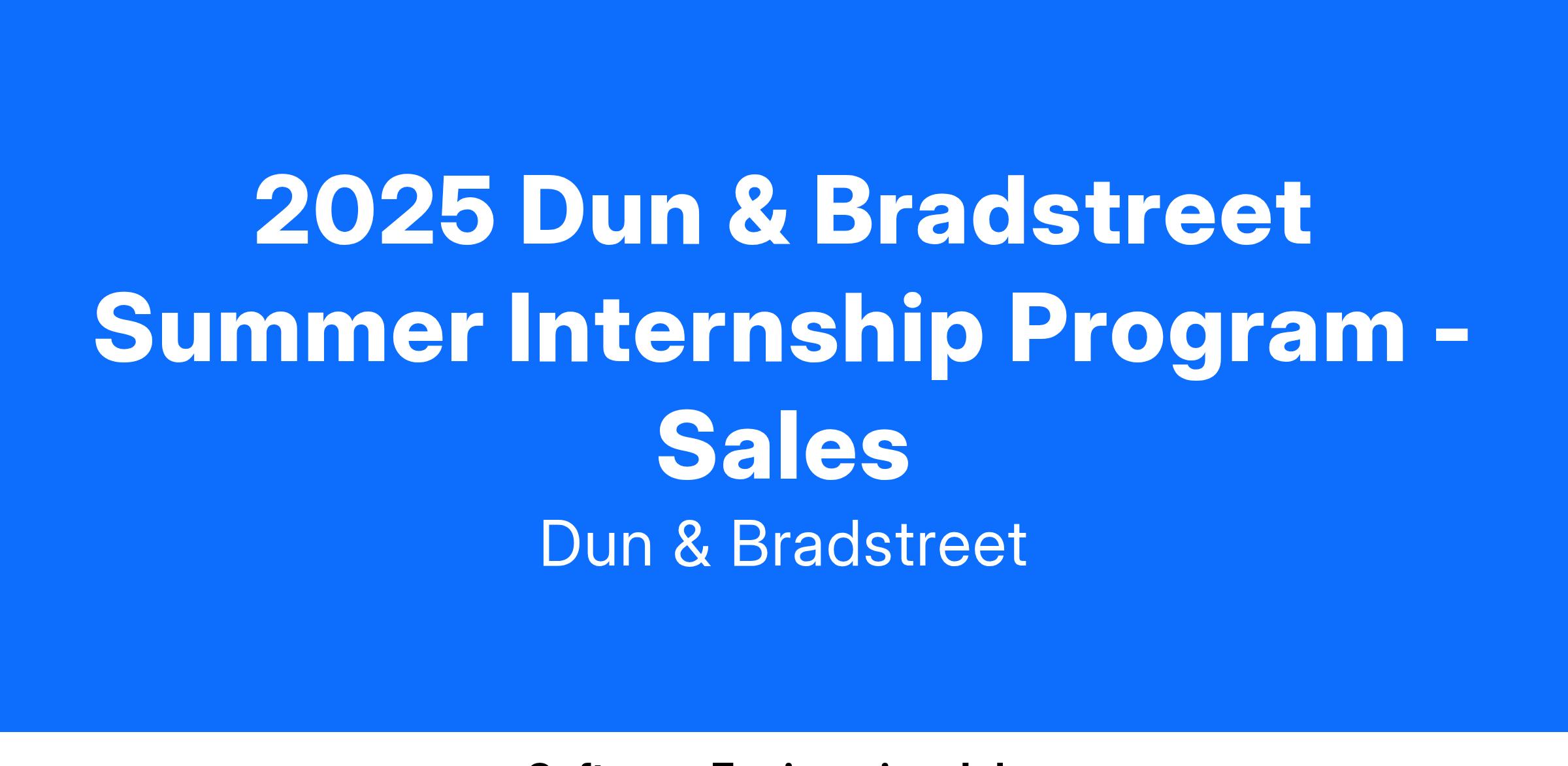 Dun & Bradstreet is only able to consider 2025 Summer Intern candidates who are permanently eligible to work in the United States.