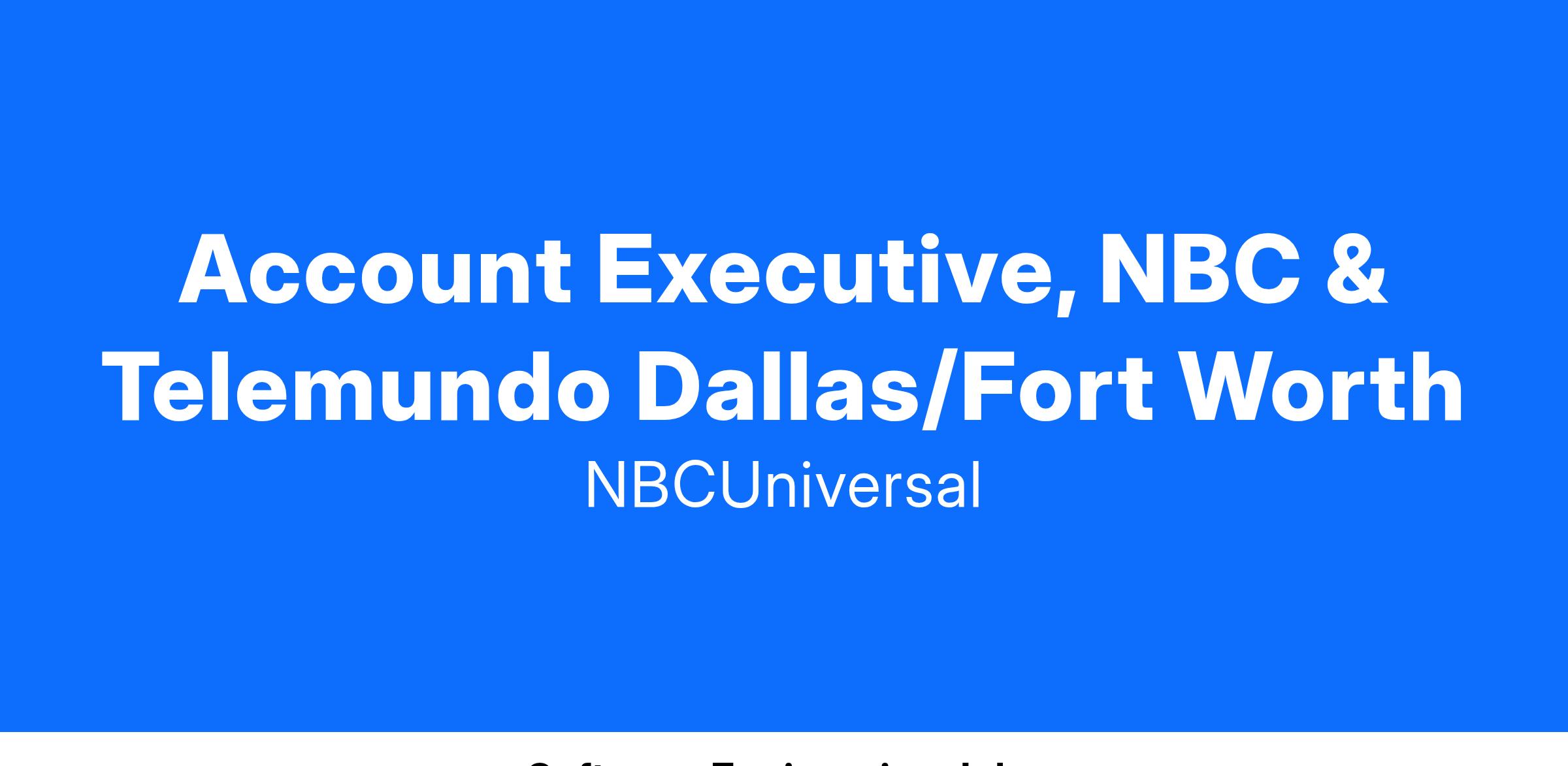KXAS-TV and KXTX -TV, the NBCUniversal television stations in DFW, are looking for a dynamic Account Executive to join the Multi-Market Sales team. This position is primarily responsible for maintaining and growing sales revenue, as well as cultivating and developing new advertisers for the station groups. The ability to work multi-cultural with clients of all levels of business is paramount, from large cap, medium and small businesses, in addition to exploring unique paths to procure business. The Account Executive will be expected to meet quarterly and annual targets by servicing existing clients as well as identifying and prospecting new business. This position requires an individual with a keen ability to develop concepts to create, incrementally grow and maintain sales revenue by connecting a corporation’s marketing goals seamlessly with the entire portfolio of NBC Local Media content distribution platforms. This position also requires the understanding of non-linear sales and the ability to sell these platforms. The successful candidate will need a strong understanding of non-linear products, specifically the OTT landscape, will be critical to the success of our organization.