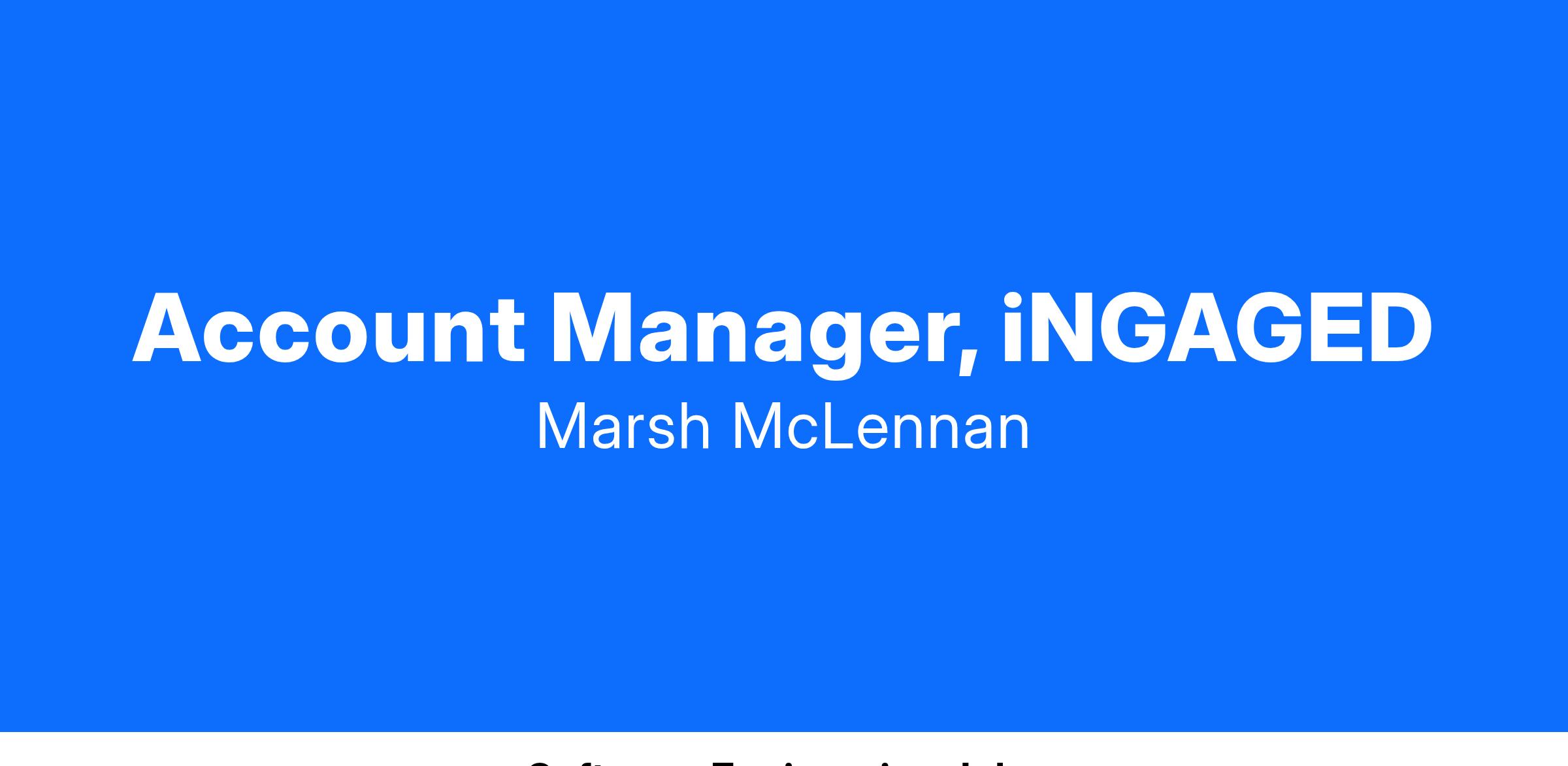 iNGAGED is a product division of Marsh McLennan Companies that develops custom communication platforms (inclusive of a custom branded native app) for our clients. The technology was created by in-house developers. The Account Manager position is a core part of our ability to deliver at a high level of precision.