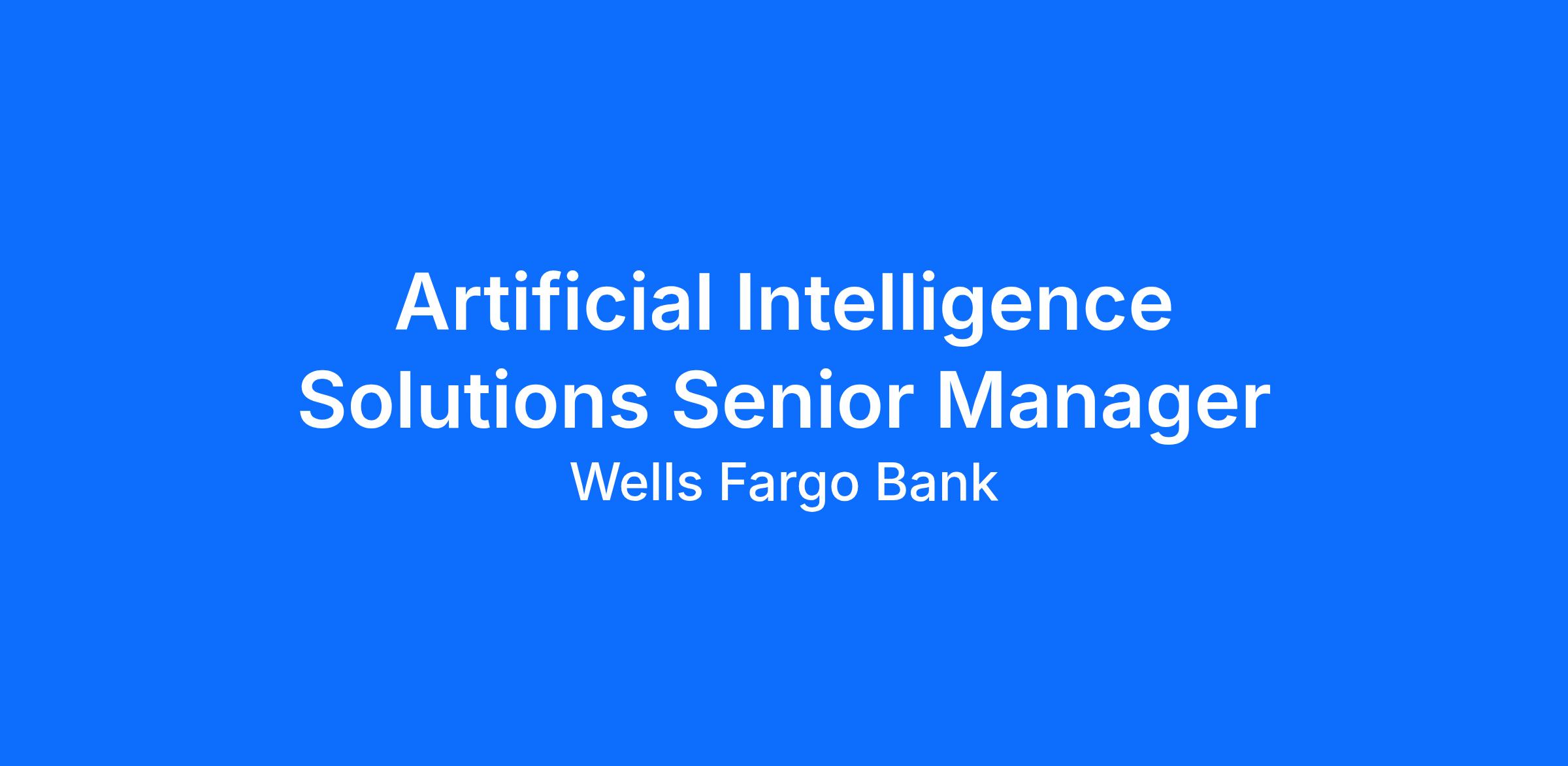 Wells Fargo is seeking an Artificial Intelligence Solutions Senior Manager, as part of the Artificial Intelligence team.