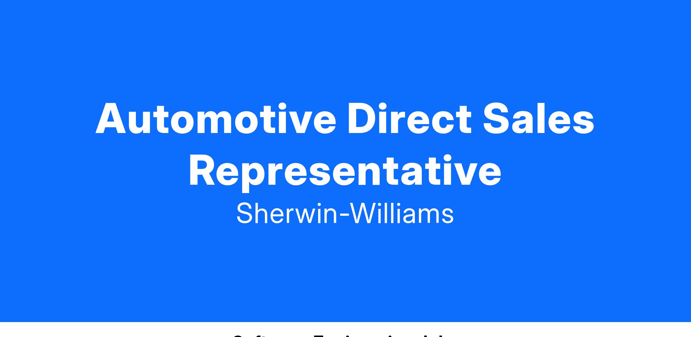 The Sales Representative is responsible for developing sales in a specific geographic territory. Duties include prospecting for new business and making calls to existing and new customers for the purpose of selling Automotive Finishes products, which include Sherwin-Williams labeled automotive paint and associated products. Typical accounts include automotive body shops, production, and fleet shops.