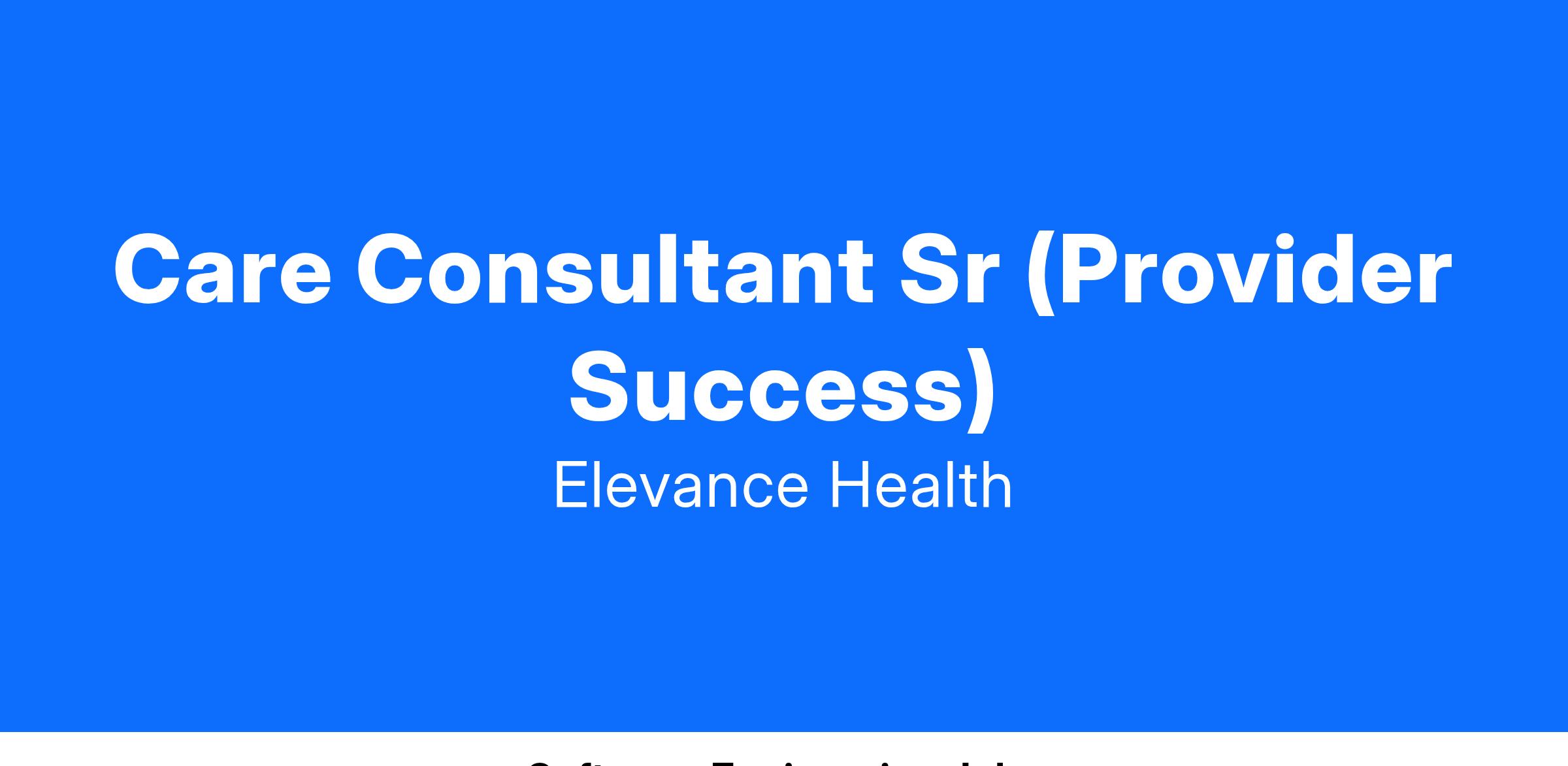 Care Consultant Sr (Provider Success)Job Description: