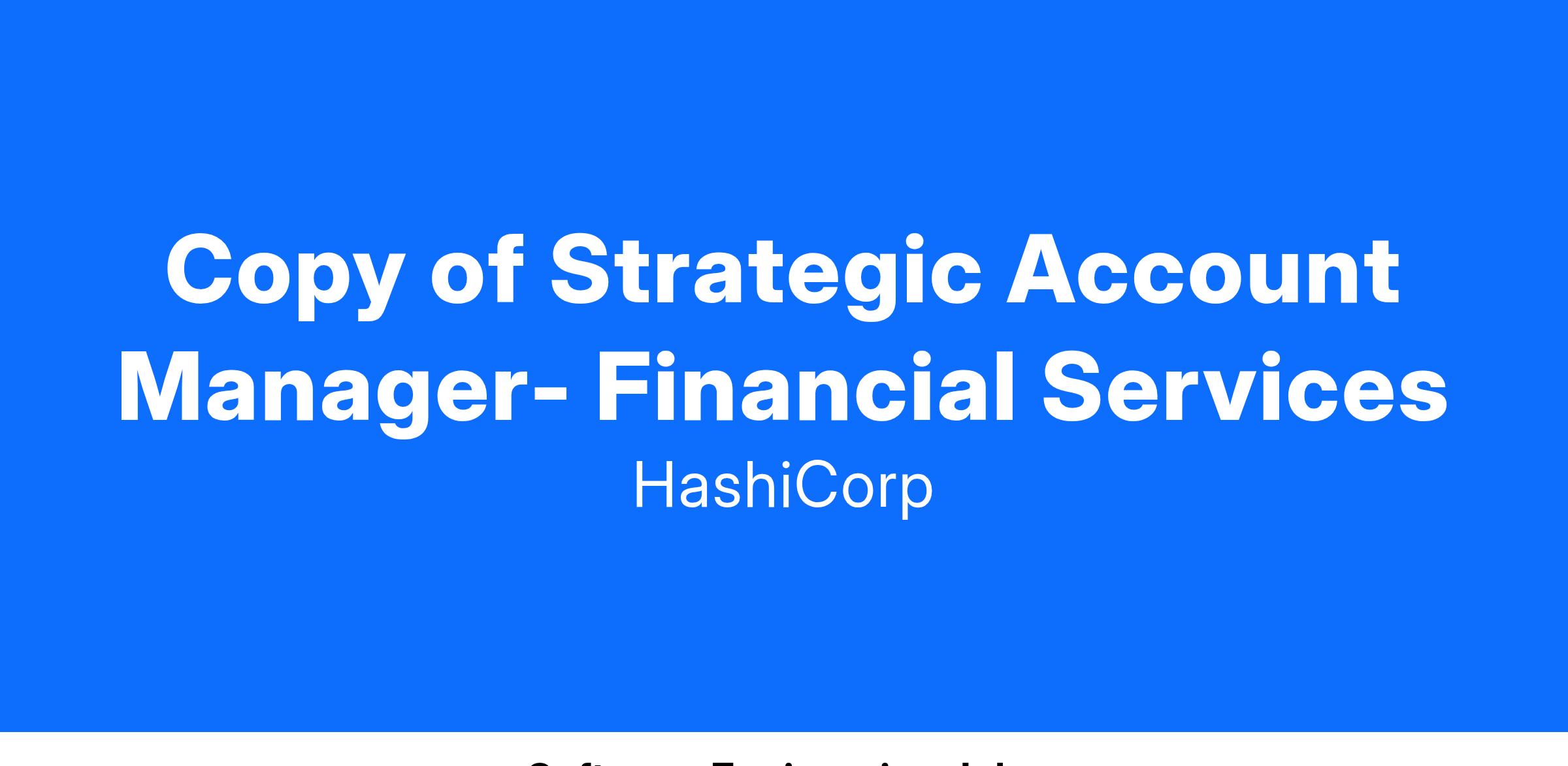 Strategic Account Manager is an outside sales position responsible for developing, managing, and closing business within Strategic Enterprise Accounts in our strategic accounts segment. The role is responsible for driving the sales cycle from prospect to close, selling the complete HashiCorp software suite to named key accounts and ensuring adoption and consumption of our solutions!