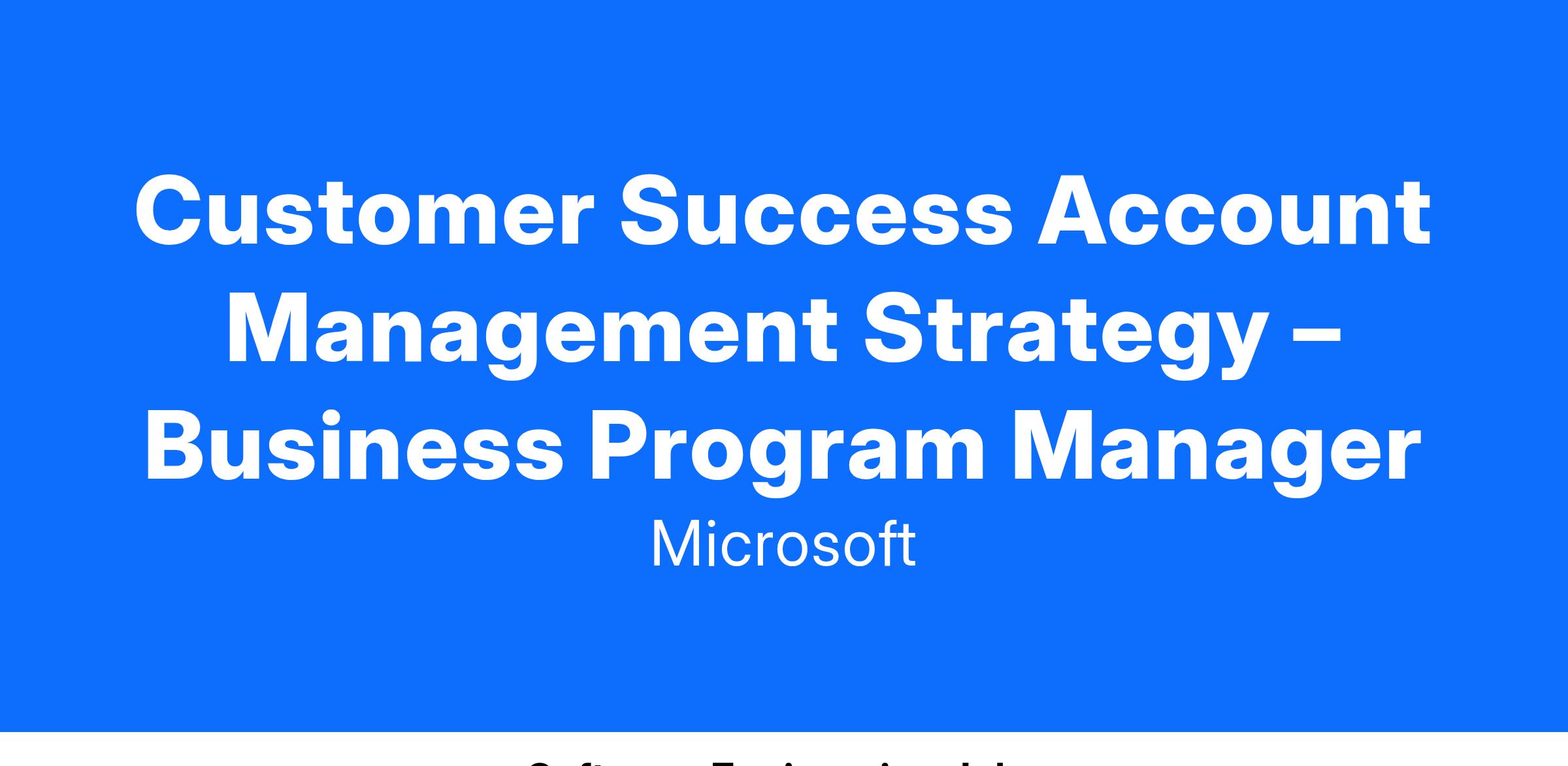The CSAM role is a critical role that leads the delivery of consumption and usage, and customer health initiatives to deliver on our customers strategic objectives. We are looking for a Customer Success Account Management (CSAM) Strategy – Business Program Manager to join the CSAM Strategy team focused on developing and executing programs that drive improvements that impact our customers consumption and usage; customer health and delivery excellence.