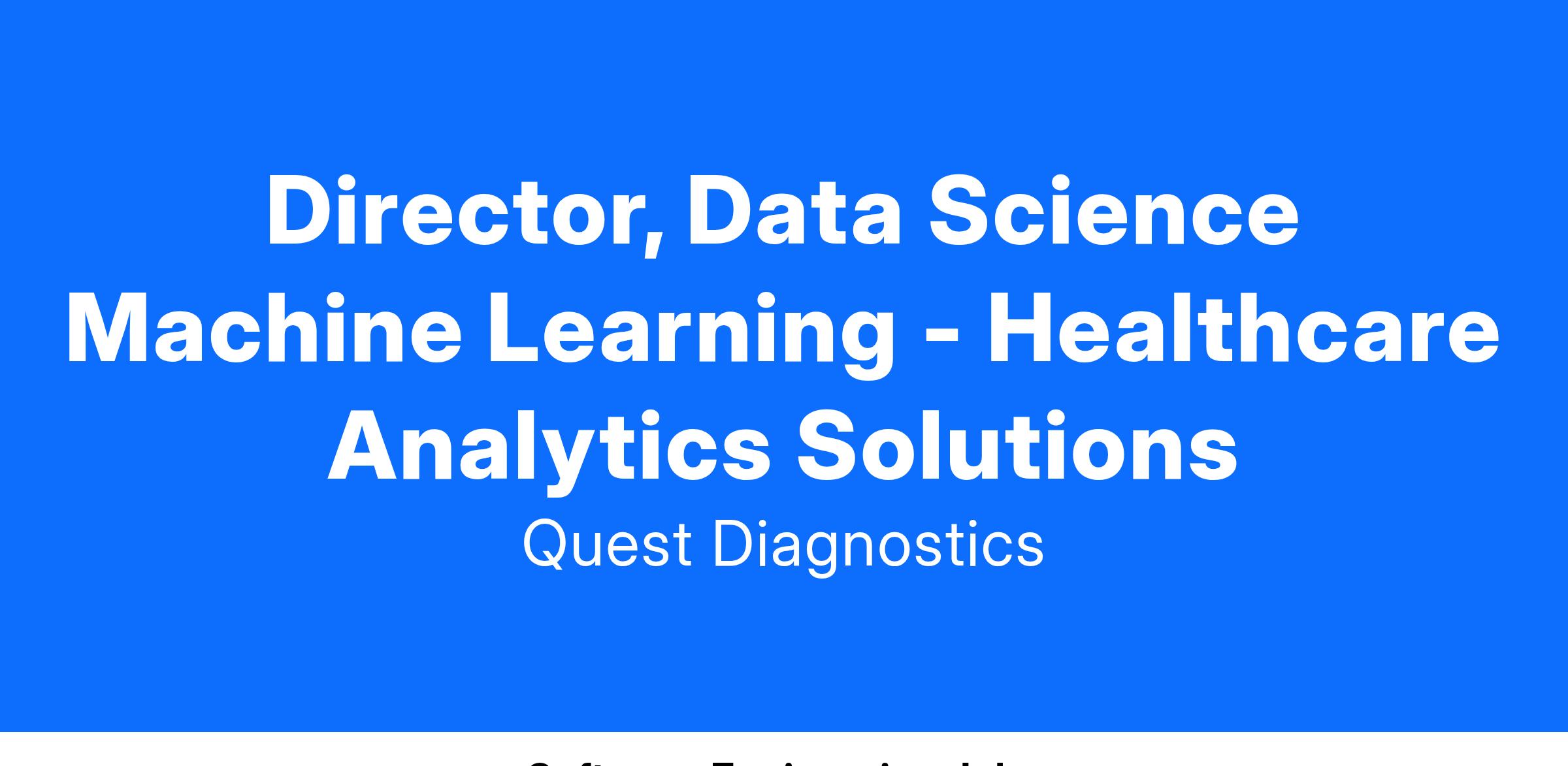 The Director, Data Science Machine Learning is responsible for leading and managing innovation and implementation of advanced analytics solutions to complex challenges to improve the overall impact and value of diagnostic testing and patient health information and services that patients and doctors need to make better healthcare decisions. In this role, you will research and explore novel approaches to complex challenges and help design, develop, and deploy innovative solutions that use the spectrum of data science fields of study, including natural language processing, machine learning and AI technology, to improve patient healthcare outcomes. You will be a hands-on leader overseeing a team of highly skilled data scientists and will coordinate and collaborate across Quest Technology and other business partners ensuring synchronicity of data science solutions, application development, and alignment with business needs and strategy.