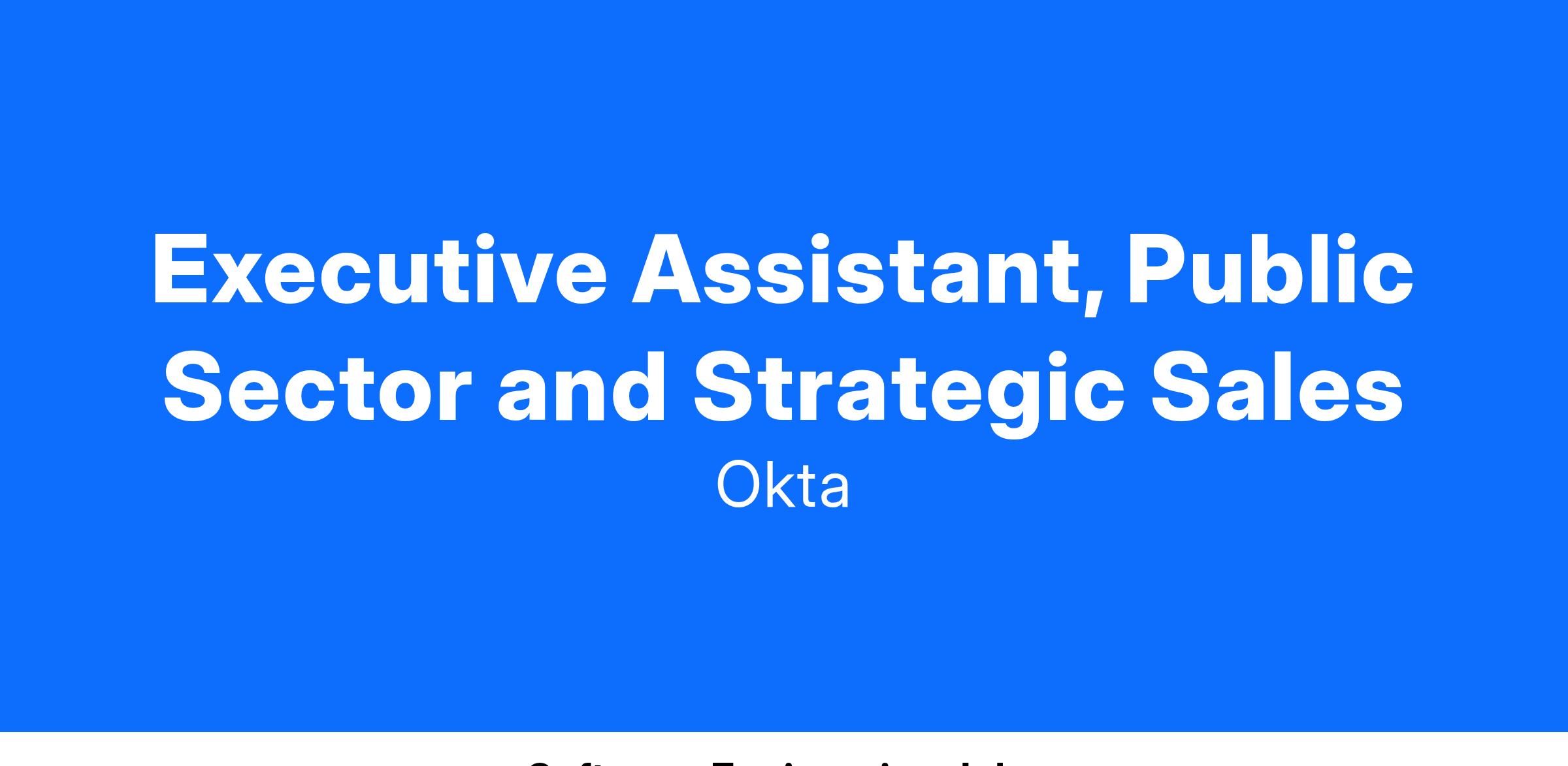 At Okta, our Executive Assistants provide a wide array of administrative, logistical, and project-related support to their Executives. We are looking for an Executive Assistant to be a true business partner to two to four VP's within our Public Sector Sales org. As a true business partner, you will be a huge part of the organization's success. This role has a high amount of visibility and works cross-functionally across the company.