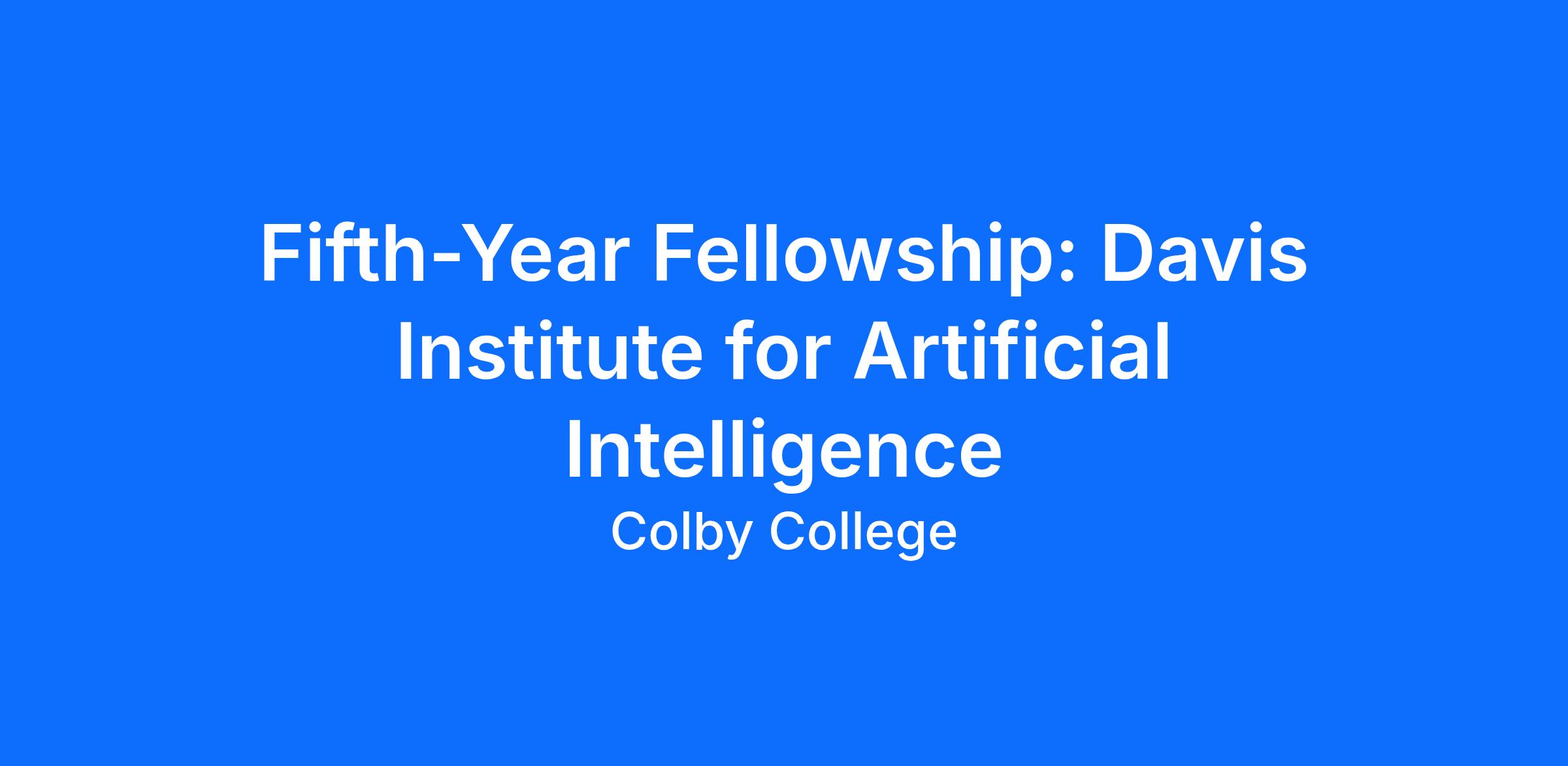 Colby College seeks interested candidates for a Fellowship position at the Davis Institute for Artificial Intelligence (DavisAI). The fifth-year fellowship is a professional opportunity for a recent Colby graduate to expand their interdisciplinary AI leadership skills, further their professional development and continue to serve Colby and the broader community. The fellowship will benefit Colby students who have demonstrated a deep commitment to engaging through DavisAI in AI research and with the Colby community including students, faculty, alumni and administration. The fellowship program model is designed to impact campus culture, strengthen relationships, cultivate a sense of community, and maximize professional development opportunities by collaborating across the campus and with key partners across Maine, nationally and internationally. Fellows will forge new relationships across campus to grow student, faculty and administrators AI engagement and directly support the collaborative work being done across disciplines.