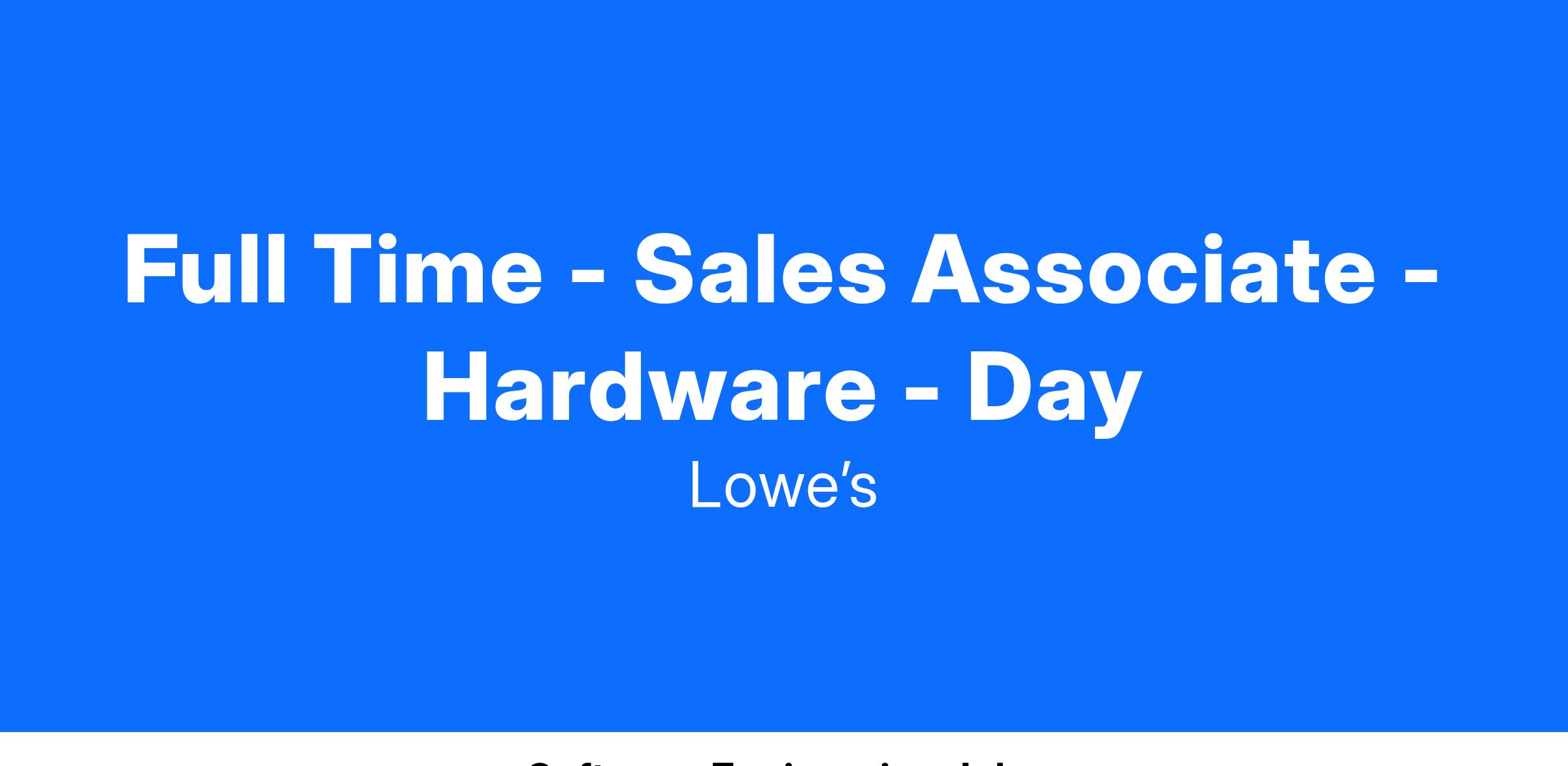 - Certification in trade related to department (e.g., hardware, kitchen, plumbing, electrical, lawn and garden, and lumber/building materials)