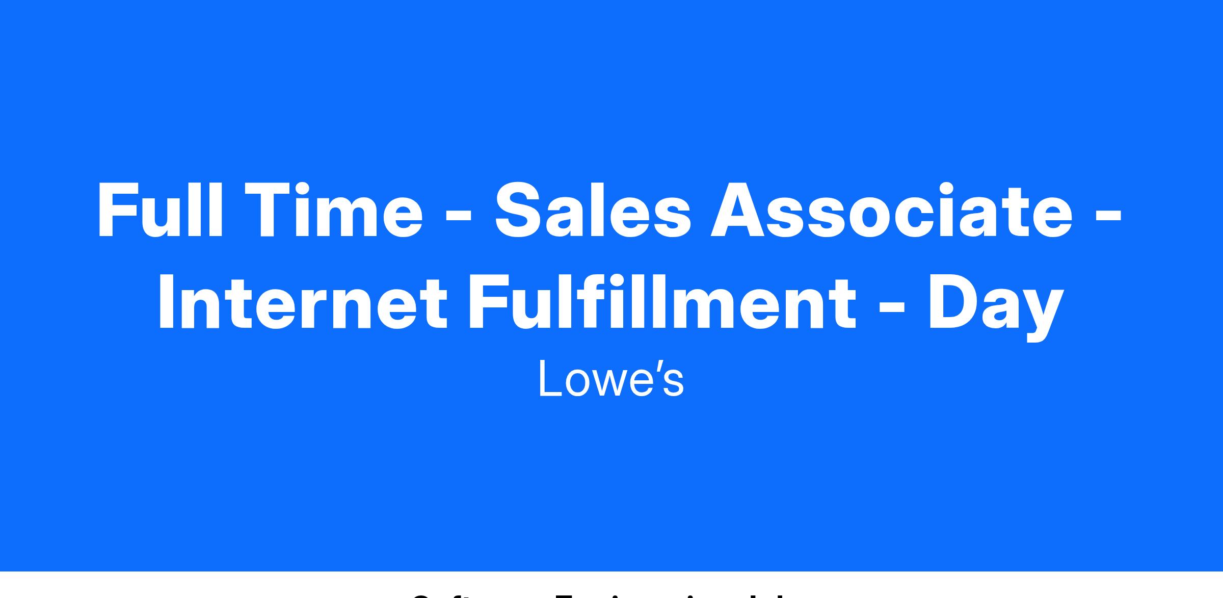 Full Time - Sales Associate - Internet Fulfillment - Day