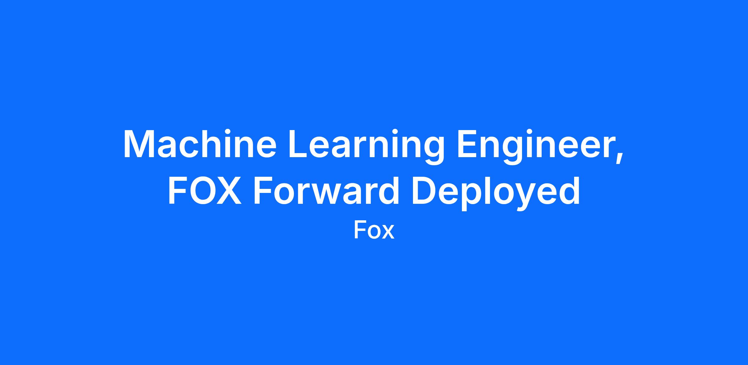 Fox CorporationUnder the FOX banner, we produce and distribute content through some of the world’s leading and most valued brands, including: FOX News Media, FOX Sports, FOX Entertainment, FOX Television Stations and Tubi Media Group. We empower a diverse range of creators to imagine and develop culturally significant content, while building an organization that thrives on creative ideas, operational expertise and strategic thinking.FOX Forward Deployed is an 12-month rotational program that embeds early-career machine learning engineers inside the teams powering FOX’s biggest, most-watched moments.