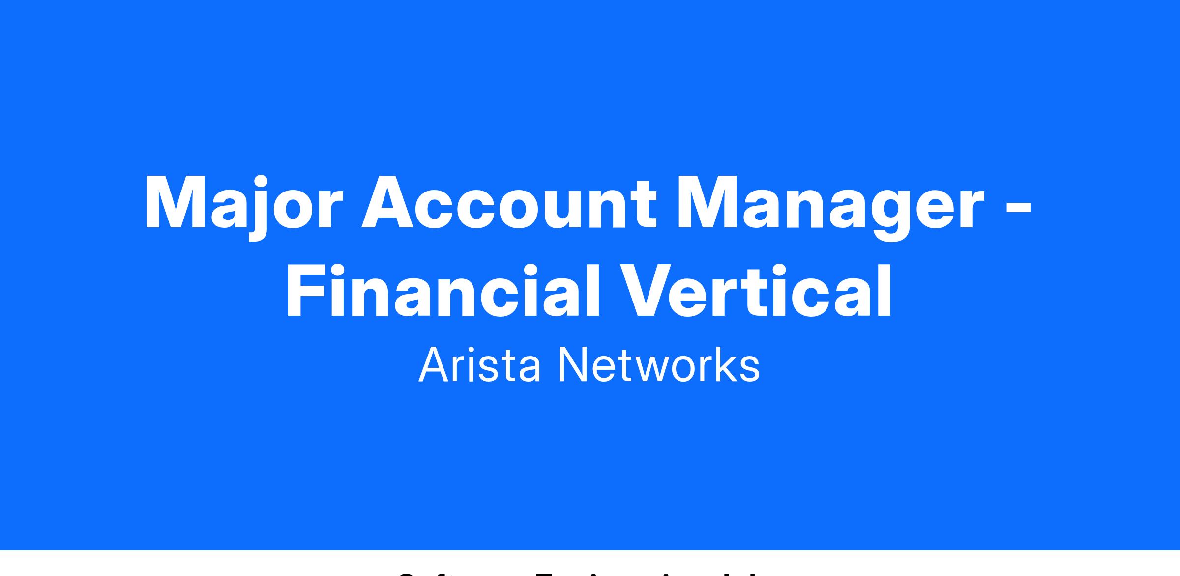 We are seeking an Named Account Manager to join our growing Sales organization. This role will be instrumental in growing the Arista brand within both existing and new financial vertical accounts in the NYC metro area.
