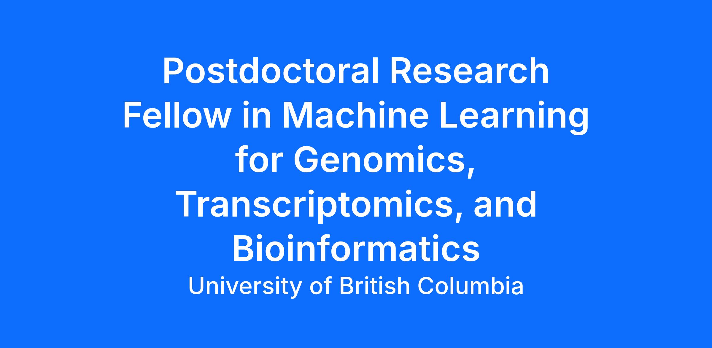 The School of Biomedical Engineering at the University of British Columbia, Vancouver campus is seeking one postdoctoral fellow to join our dynamic team in the AI in Medicine Lab (www.aimlab.ca). This position is based in the School of Biomedical Engineering.