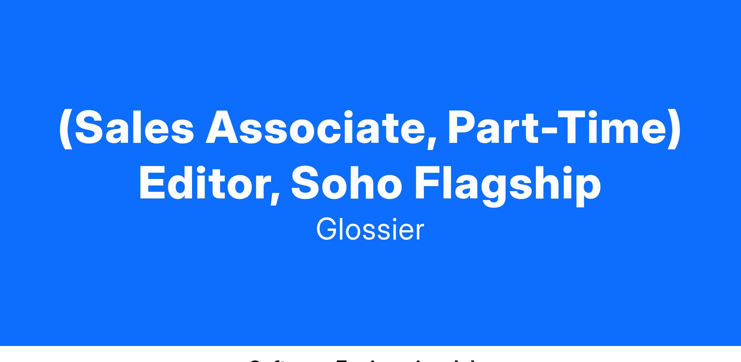 Our store teams operate in environments fueled by our people-first employee experience philosophy rooted in authenticity, integrity, inclusion, equity, and empathy. As an Editor, it is your job to ensure the customer experience lives through with our product, its presentation, packaging, and care. Driven by an authentic desire to collaborate and engage with others, you will inspire and create exceptional experiences for our customers as they discover and deepen their connection with our brand through our products - whether in-store, picking up an online order, or processing a return or exchange. As an avid team player, you will collaborate with all members of the store team to ensure every customer touchpoint throughout their experience is cohesive and seamless. Known for being optimistic and able to find joy with everyday interactions, you will help set the tone for the overall culture within the store team - joy is our language! Editors will be part of a team of impassioned storytellers, driven by curiosity and the power of the Glossier community, reimagining the future of beauty one experience at a time.