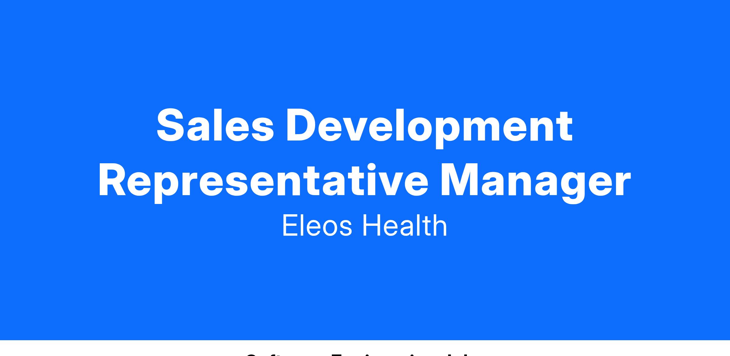 We are seeking a dynamic Manager of Sales Development to lead and expand our Sales Development team, reporting directly to the VP of Growth. You will be responsible for building upon the current team of Sales Development Representatives (SDRs), recruiting, training, and coaching a high-performing team that drives pipeline opportunities and aligns with Eleos Healthβs overall growth objectives.