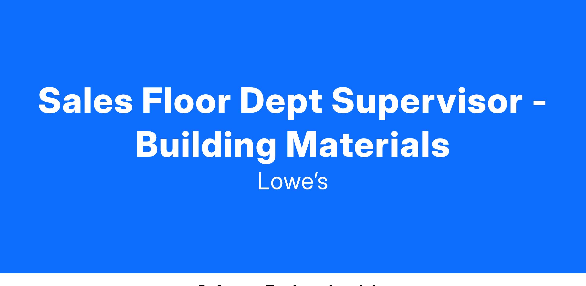 All Lowe’s associates deliver quality customer service while maintaining a store that is clean, safe, and stocked with the products our customers need. As a Sales Floor Department Supervisor, this means: