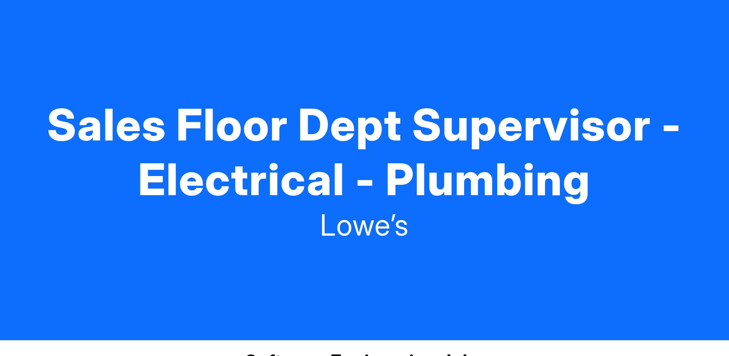 All Lowe’s associates deliver quality customer service while maintaining a store that is clean, safe, and stocked with the products our customers need. As a Sales Floor Department Supervisor, this means:
