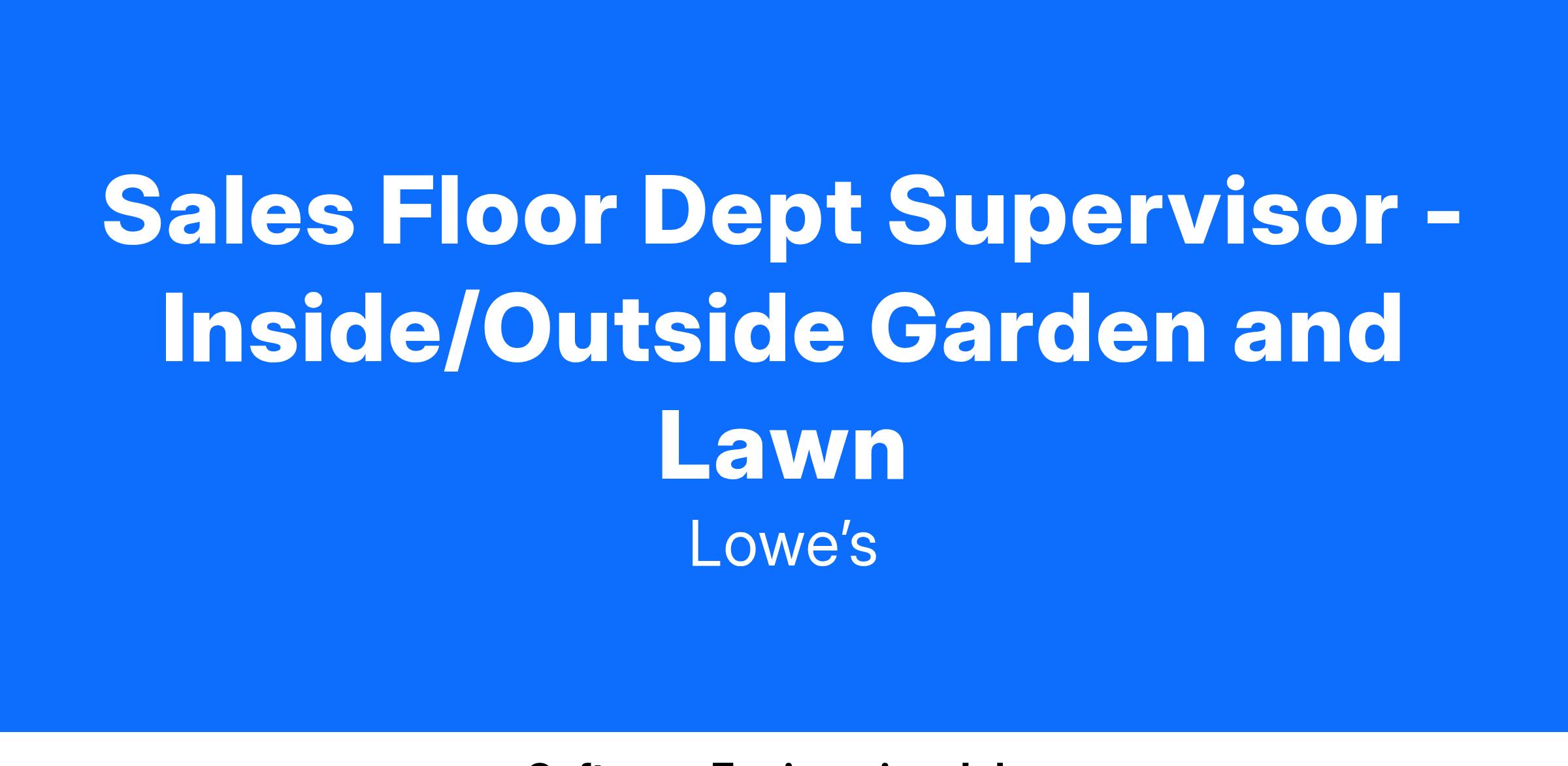 All Lowe’s associates deliver quality customer service while maintaining a store that is clean, safe, and stocked with the products our customers need. As a Sales Floor Department Supervisor, this means:
