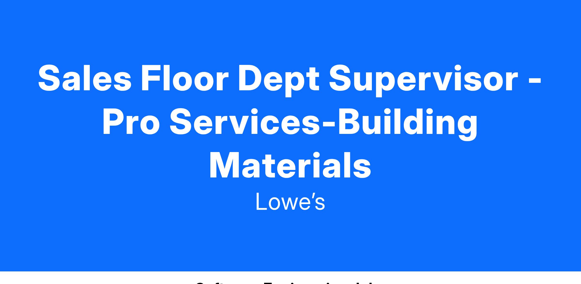 Sales Floor Dept Supervisor - Pro Services-Building Materials