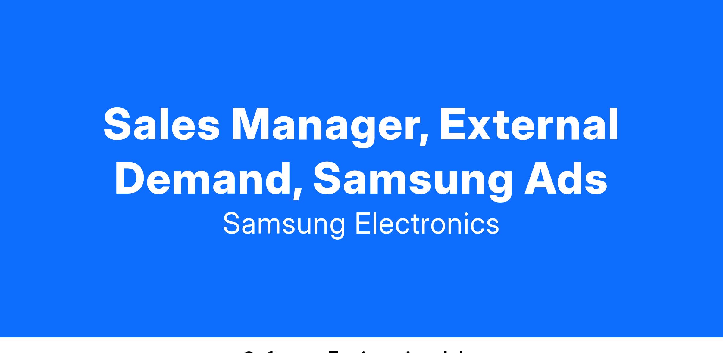 The individual should have a passion for streaming video and the rapidly changing way consumers are viewing premium content across all screens. It’s key to have a pulse on how the programmatic landscape is thinking about and allocating spend. This passion and knowledge will fuel the growth of both your and Samsung Ads’ business.