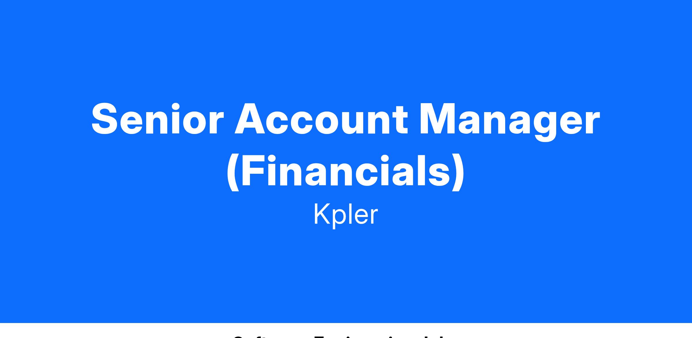 The Sales team is seeking a highly motivated Senior Account Manager (Financials) who is excited about growing existing accounts across North America.