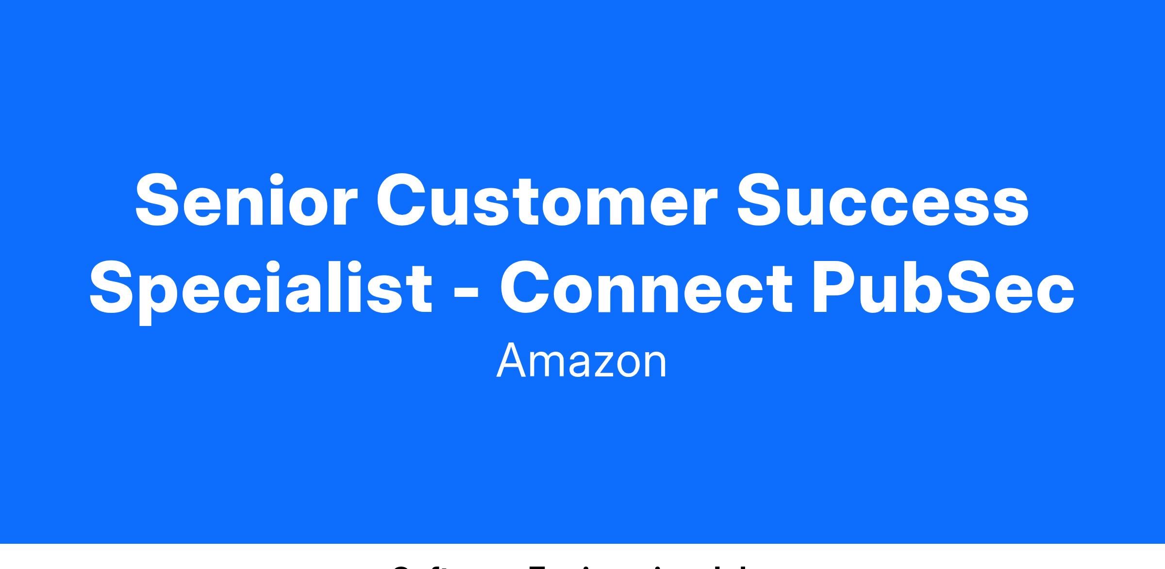 AWS is seeking an experienced Contact Center as a Service (CCaaS) Customer Success Specialist for Amazon Connect with Public Sector experience. Connect was born out of Amazon’s own need for the best CCaaS solution that works at scale, while improving customer experience. Today, Connect is one of AWS's fastest growing services, leveraging native generative AI capabilities to improve customer and employee experiences. As a Connect Customer Success Specialist, you will act as a strategic advisor to customers, helping them innovate and optimize their contact center and customer experience through adoption of the Connect capabilities. You will lead cross-functional field teams in sales, solutions architecture, partner sales, product, and will work at the CxO level with customers to maximize the value of their Connect investment.