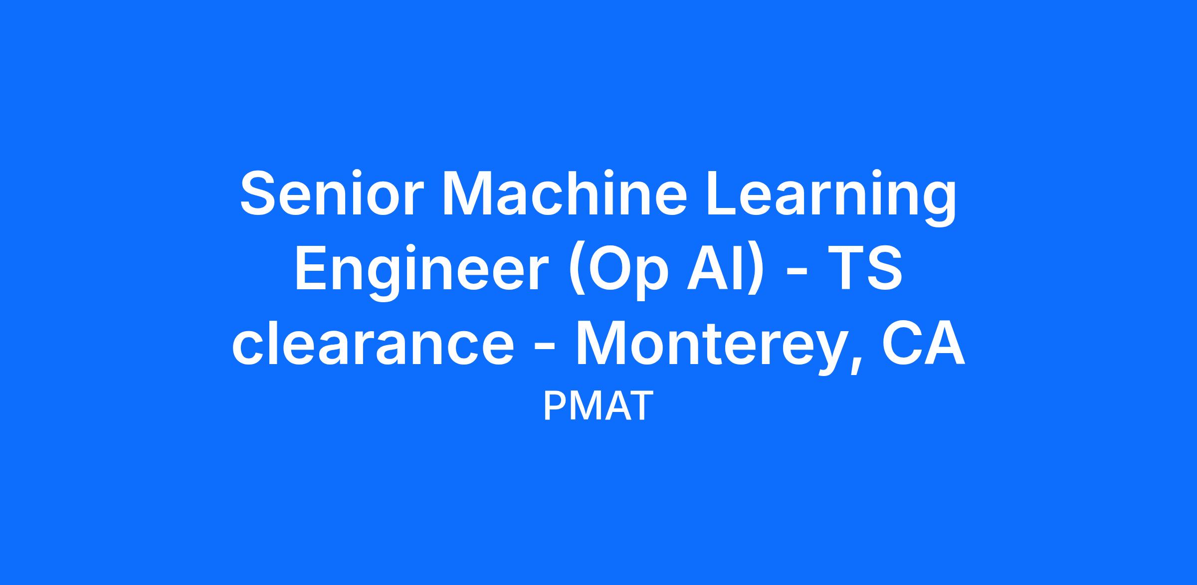 About the Role: PMAT is seeking a Senior Machine Learning Engineer to design, develop, and implement advanced machine learning models and algorithms in support of naval applications. This role requires deep technical expertise in modern machine learning methods, distributed systems, cloud-native development, and software engineering best practices. The Senior ML Engineer will collaborate with multidisciplinary teams to deliver mission-focused AI solutions that integrate into operational Navy environments.