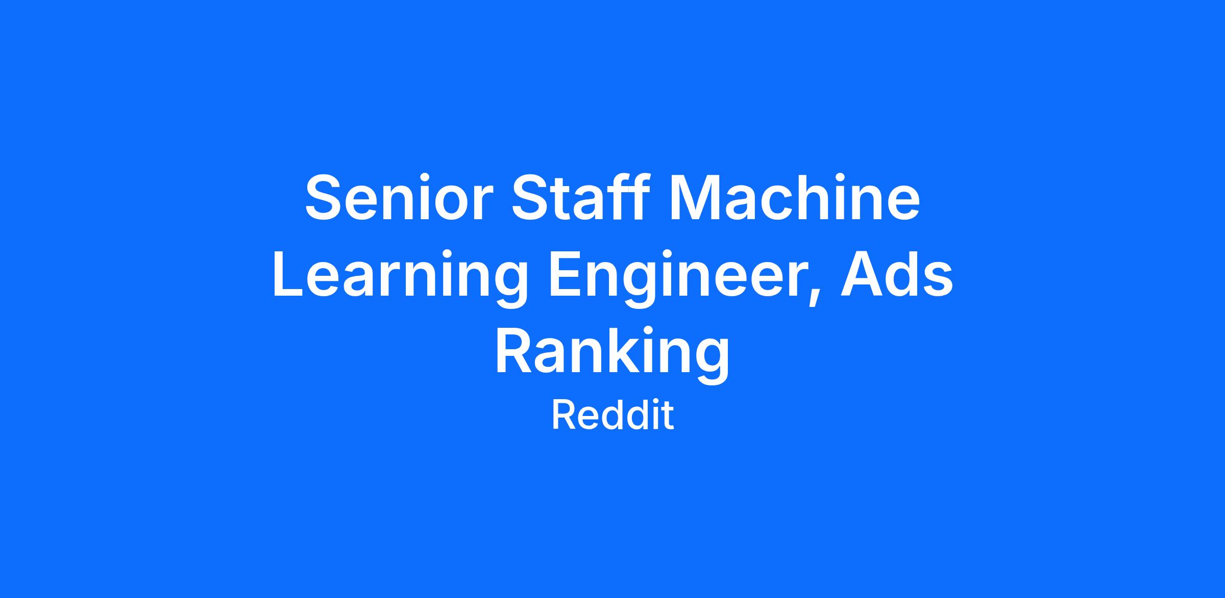 We’re looking for a Senior Staff Machine Learning Engineer to join Reddit’s Ads Ranking Org. This role is part of a broader effort to enhance Reddit’s ML-powered ad ranking systems through improved model architectures, contextual embeddings, and conversion-optimized modeling.
