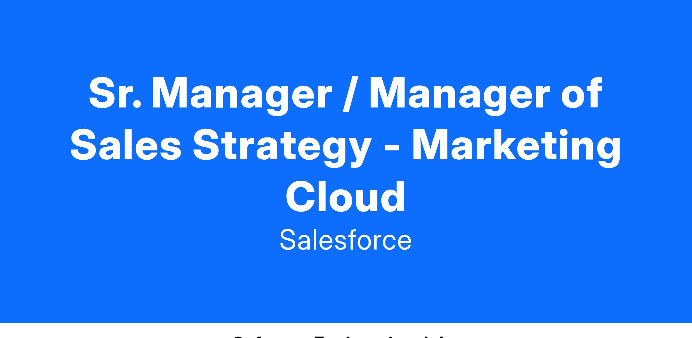 We are seeking a results-driven Sr. Manager / Manager of Go-to-Market (GTM) Strategy to lead the alignment and execution of initiatives driving sustainable Marketing Cloud growth. This role will work with and connect cross-functional teams, prioritize high-impact areas, and ensure lockstep collaboration between product and distribution teams. The ideal candidate will possess a strategic mindset, strong leadership skills, excellent communication skills and a passion for driving measurable business outcomes in a dynamic environment.