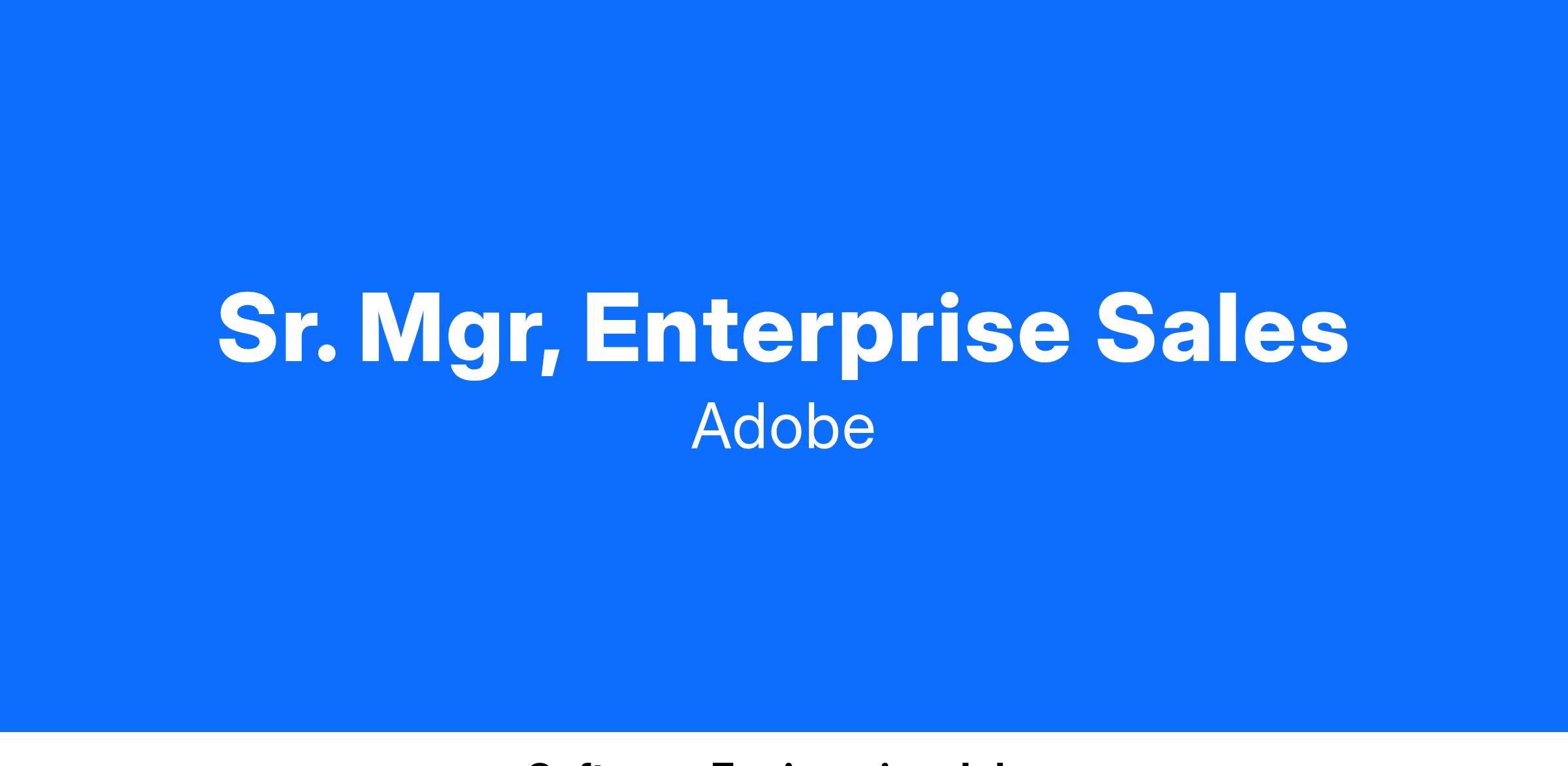 Adobe is looking for a Sales Manager who is responsible for achieving team sales targets through the sale of Adobe’s Digital Marketing product lines. This will be part of our enterprise sales team, working with Adobe’s largest customers across the Media and Entertainment industry. The successful candidate will be familiar with selling business-focused enterprise software applications and/or digital marketing solutions. This front-line leadership role will be responsible for building and developing a team’s sales pipeline by guiding Account Directors who deliver on their respective sales goals. Front line leaders have an incredible opportunity to be hands on, model the best in-class behavior, and take direct ownership for success of the team in all areas. We want someone who can effectively sell to C-Suite executives, board members, and their teams; be an entrepreneur at heart, with ability to operate in decentralized and autonomous fashion with a bias for action; instill a culture of excellence that exceeds goals and targets; lead, mentor and continuously develop the team so that success is achieved in a balanced fashion.