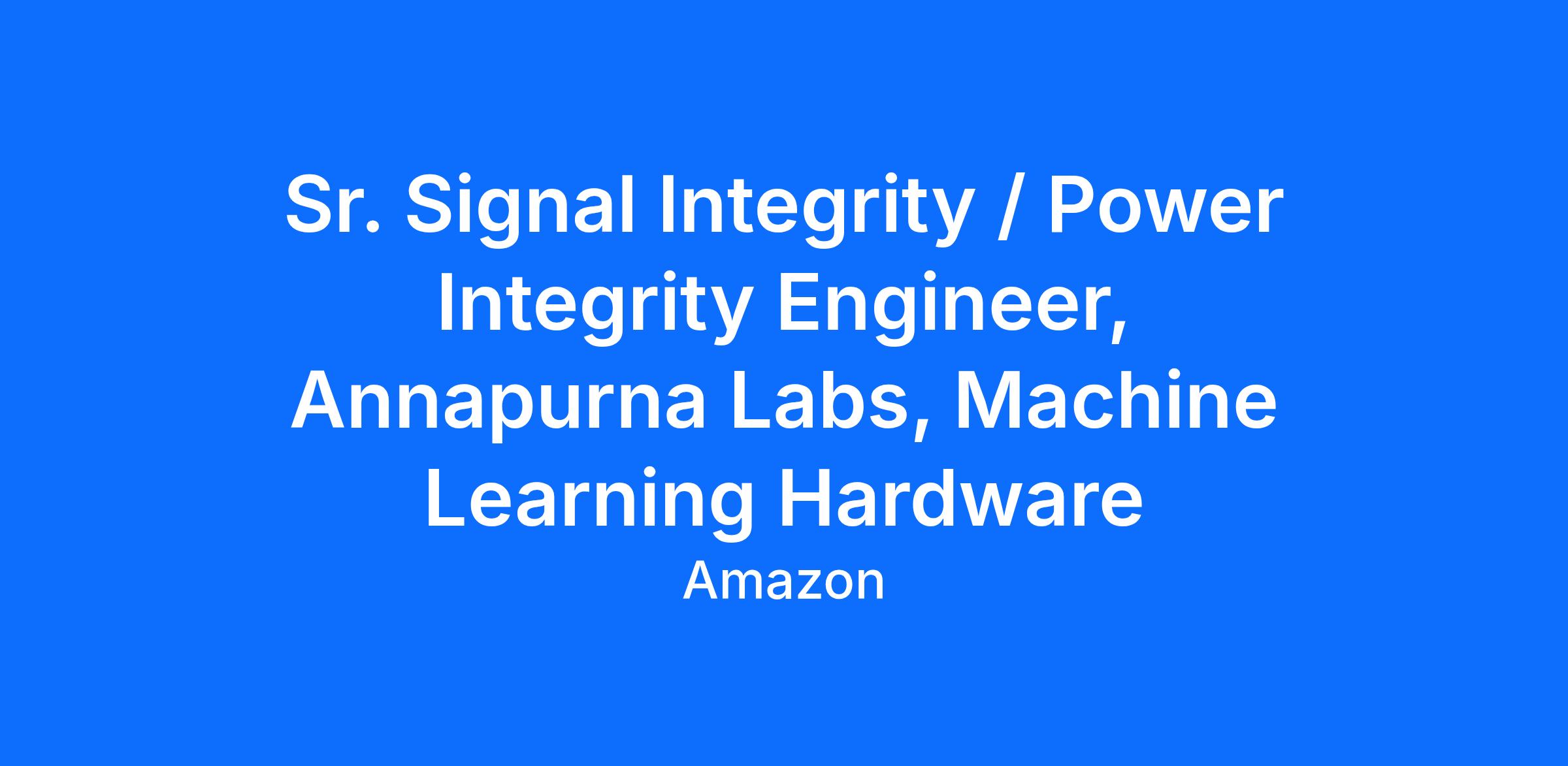 We are seeking a Senior SI/PI Engineer (Signal Integrity and Power Integrity) who will play a key role in the definition, design and validation of AWS next generation machine learning ASICs. As a senior member of our hardware team, you will have a meaningful opportunity to participate in the design and execution of all SI related topics, with the goal of creating and customized platforms that fit within AWS datacenter’s world leading technology.