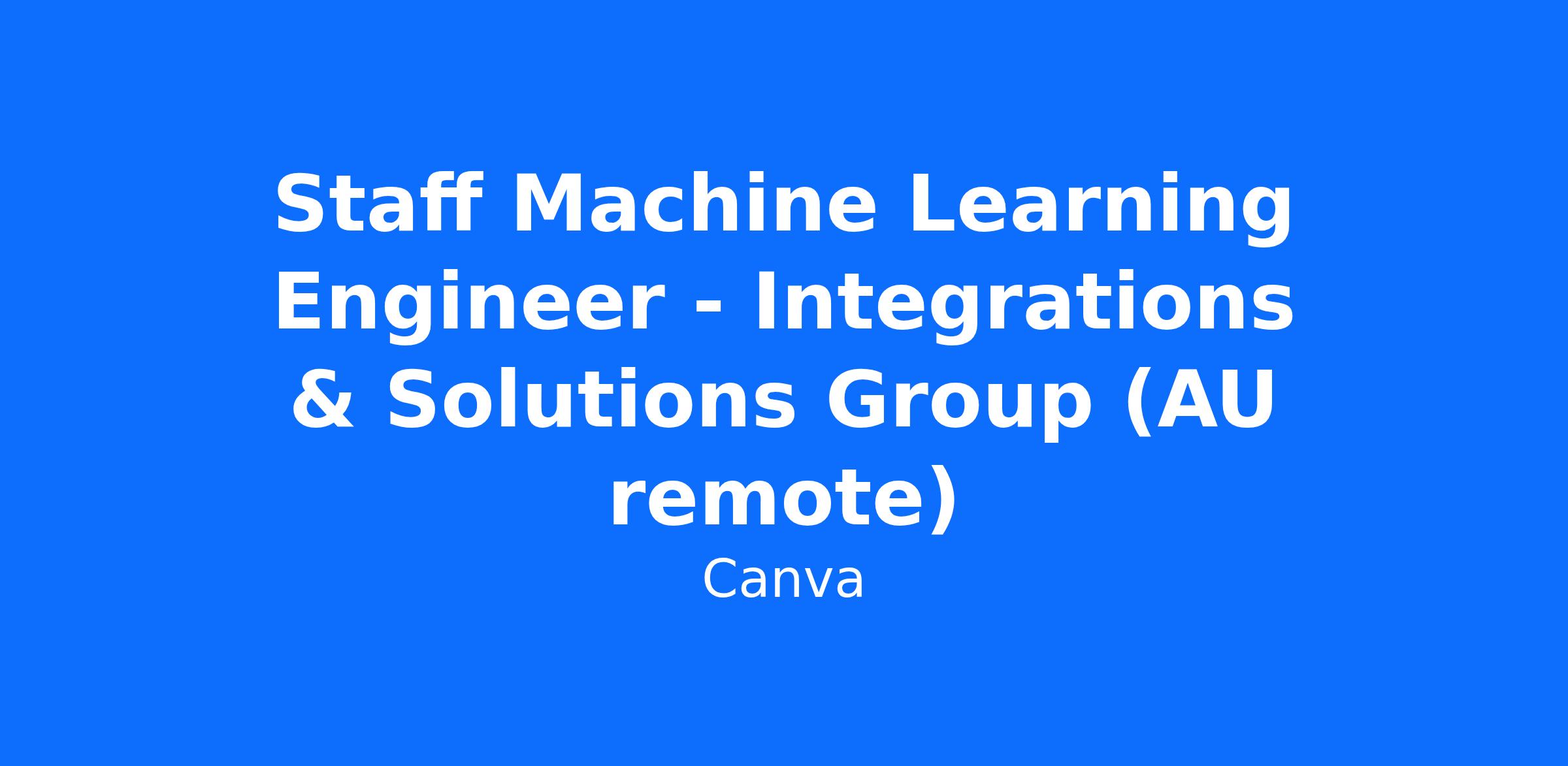 Staff Machine Learning Engineer - Integrations & Solutions Group (AU remote)