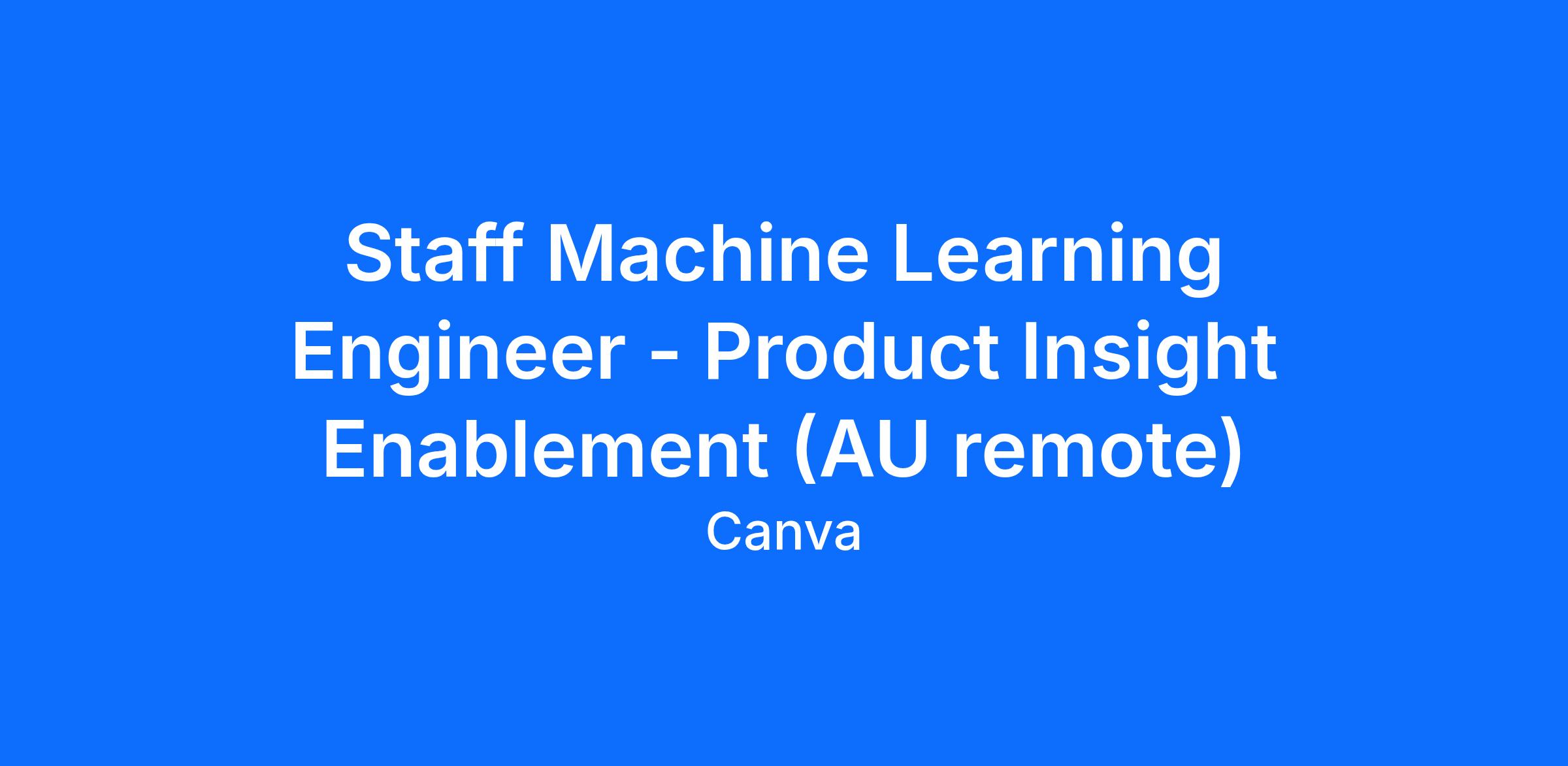 As a Staff Machine Learning Engineer, you’ll bring deep technical expertise to design and scale AI/machine learning systems that power product insights and decision-making. You’ll work across teams to develop intelligent models, experimentation frameworks, and data-driven capabilities that unlock new opportunities for Canva’s product ecosystem. This role is both hands-on and strategic — you’ll solve complex problems, influence technical direction, and collaborate with cross-functional partners to drive impact at scale. Your work will directly shape how Canva leverages data and AI to help teams cut through the noise and suggest the most impactful next steps.