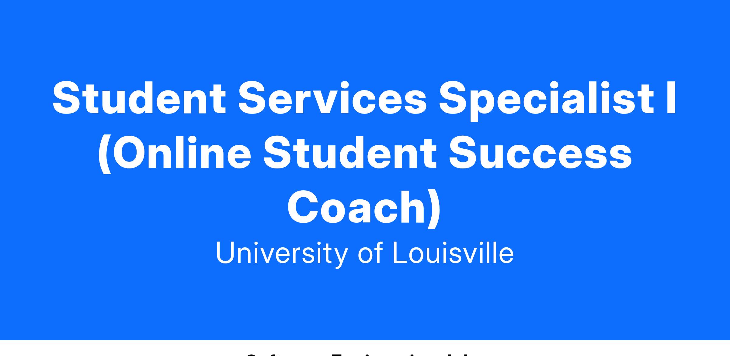 The Online Learning Team of the Delphi Center for Teaching and Learning is hiring three, remote Student Services Specialists I (Online Student Success Coach). The position is the primary point of contact for students in the University of Louisville’s online degree programs, partnering with them throughout their academic journey to support persistence, completion, and overall success. This role involves providing personalized coaching, guidance, and resources to enhance the student experience, while fostering a sense of belonging and community. They will build strong relationships with students, monitors progress and connects them with academic and support services to ensure they have the tools and support needed to meet their academic goals. The ideal candidate demonstrates a student-centered approach, strong communication skills, and the ability to collaborate across departments.