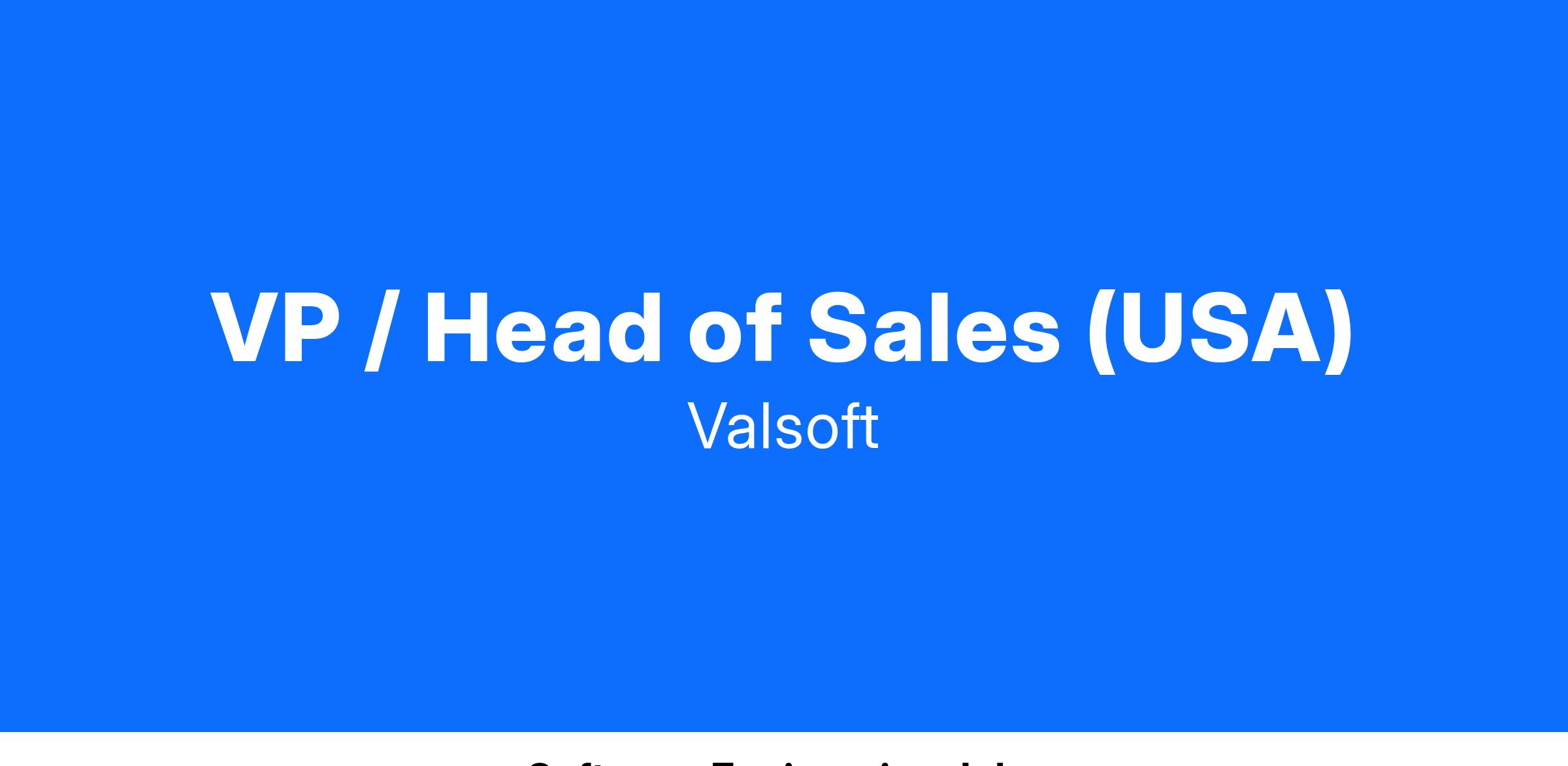Valsoft is looking for an energetic, results-driven, and hands-on VP / Head of Sales.